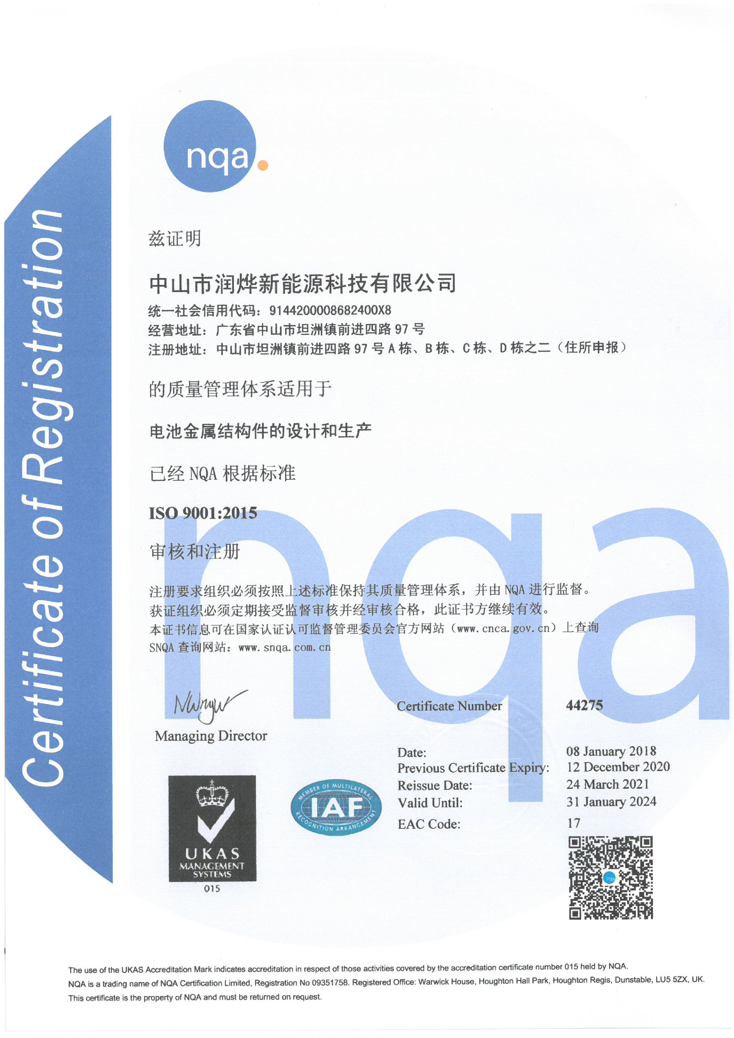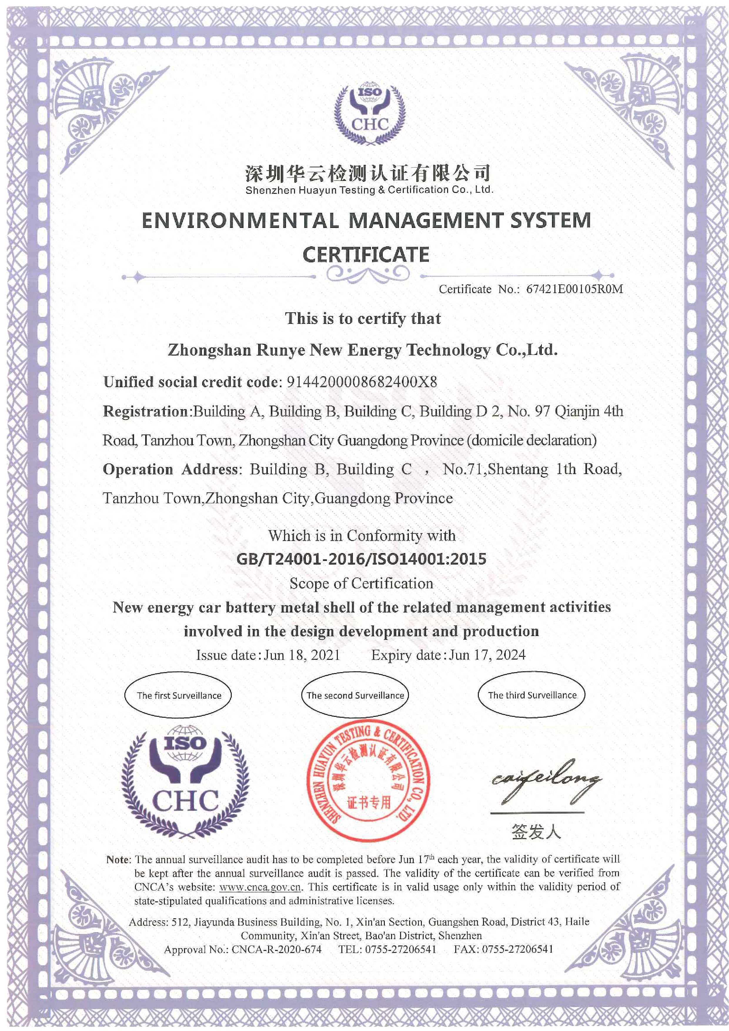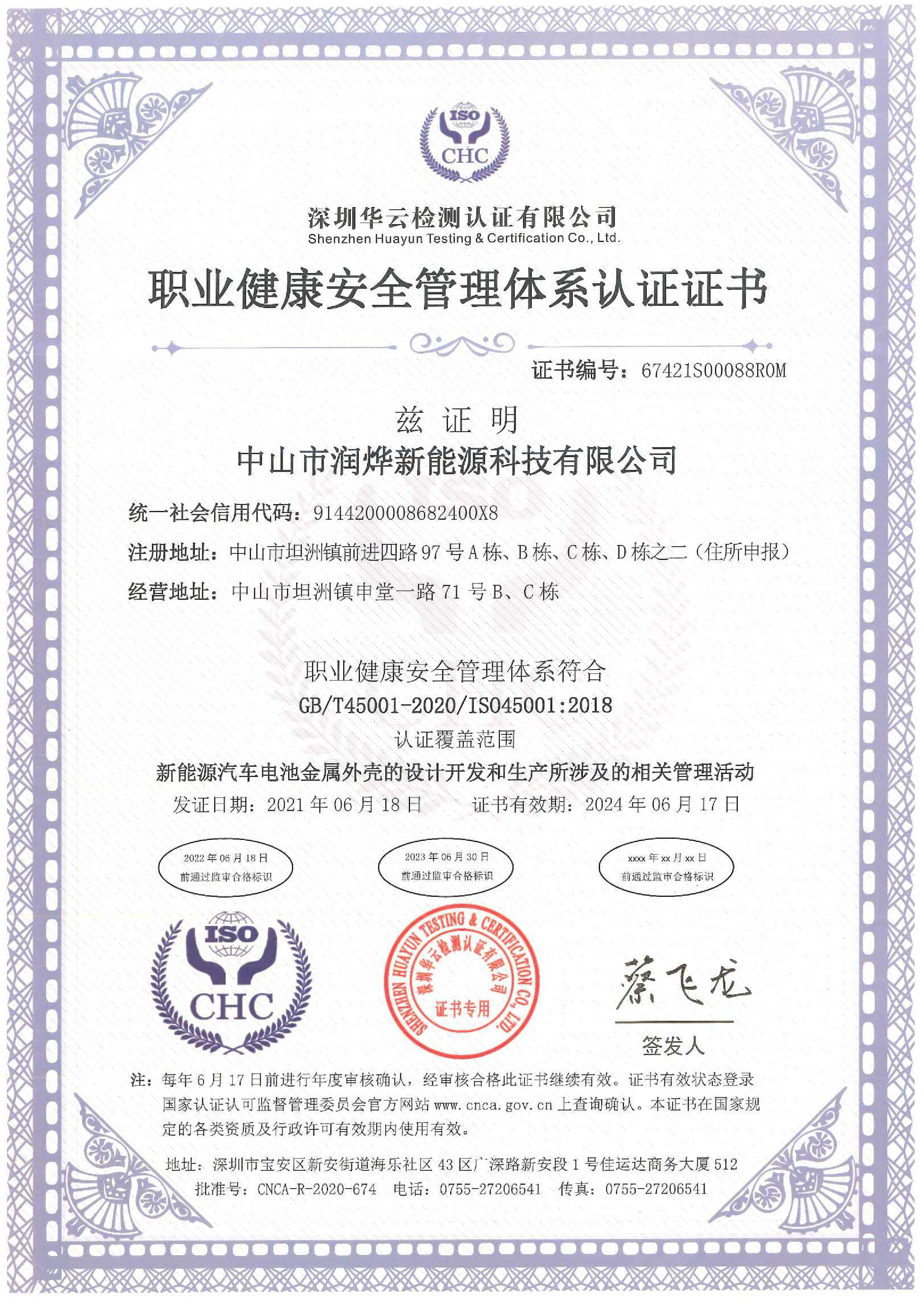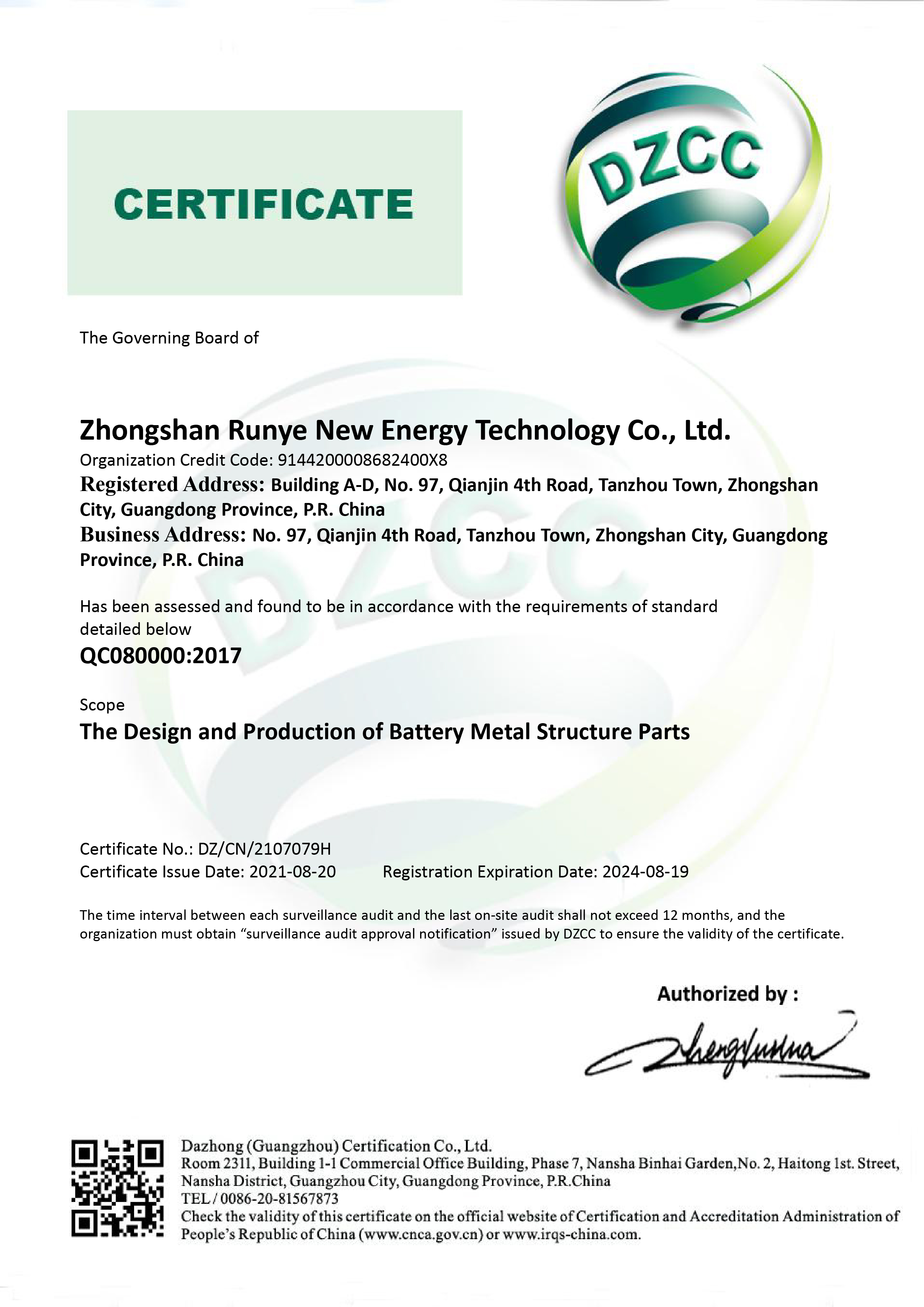 中山市润烨新能源科技有限公司是一家专注于提供新能源动力电池结构件和新能源电池PACK的研发、制造和销售为一体的高新技术企业。主营业务范围包括:新能源动力电池结构件,新能源PACK结构件,两三轮电动车电池组,四轮低速车电池包,储能电池包等产品。总公司位于粤港澳大湾区战略要地—广东省中山市,分 公司位于华中枢纽之地--湖北省宜昌市。作为新能源动力电池结构件的专业配套家,以及多年在行业内赢得 的良好口碑,同时依托华南和华中的地缘优势,我们的新能源工厂已经与国内多家知名电池公司达成战略合 作伙伴关系,作为他们的配套供应商,我司主要依托二大基地来承接和生产这些客户的订单以及做好相关的 配套服务。公司拥有达到国际领先水平的生产设备和多条自动化生产线,可提供整套动力电池结构件、储能电池结 构件的一站式服务,其中十工位“铝壳拉伸生产线”为全自动的生产模式。为实现效率、产能提升及产品品 质的进一步飞跃,科研团队自主研发出多型号高新设备,如“盖板组装线”、“自动化超声波清洗线”、 “精密CNC车床”、“精密CNC加工中心”和“精密防爆阀设备” ,“精密摩擦焊设备”,拥有业内领先的自 主知识产权发明专利和实用新型专利累计近100项,其工艺与技术位列国际领先梯队。