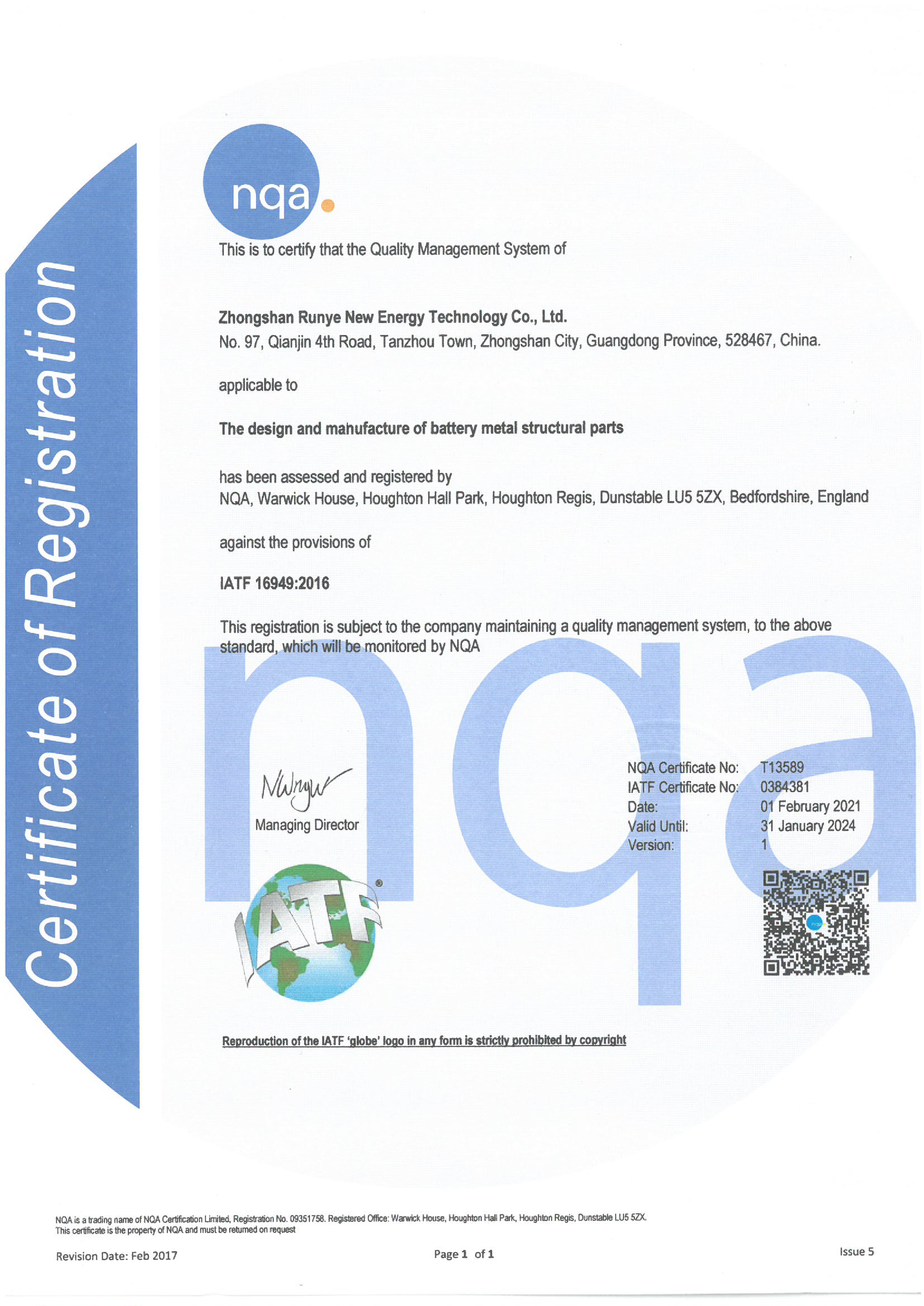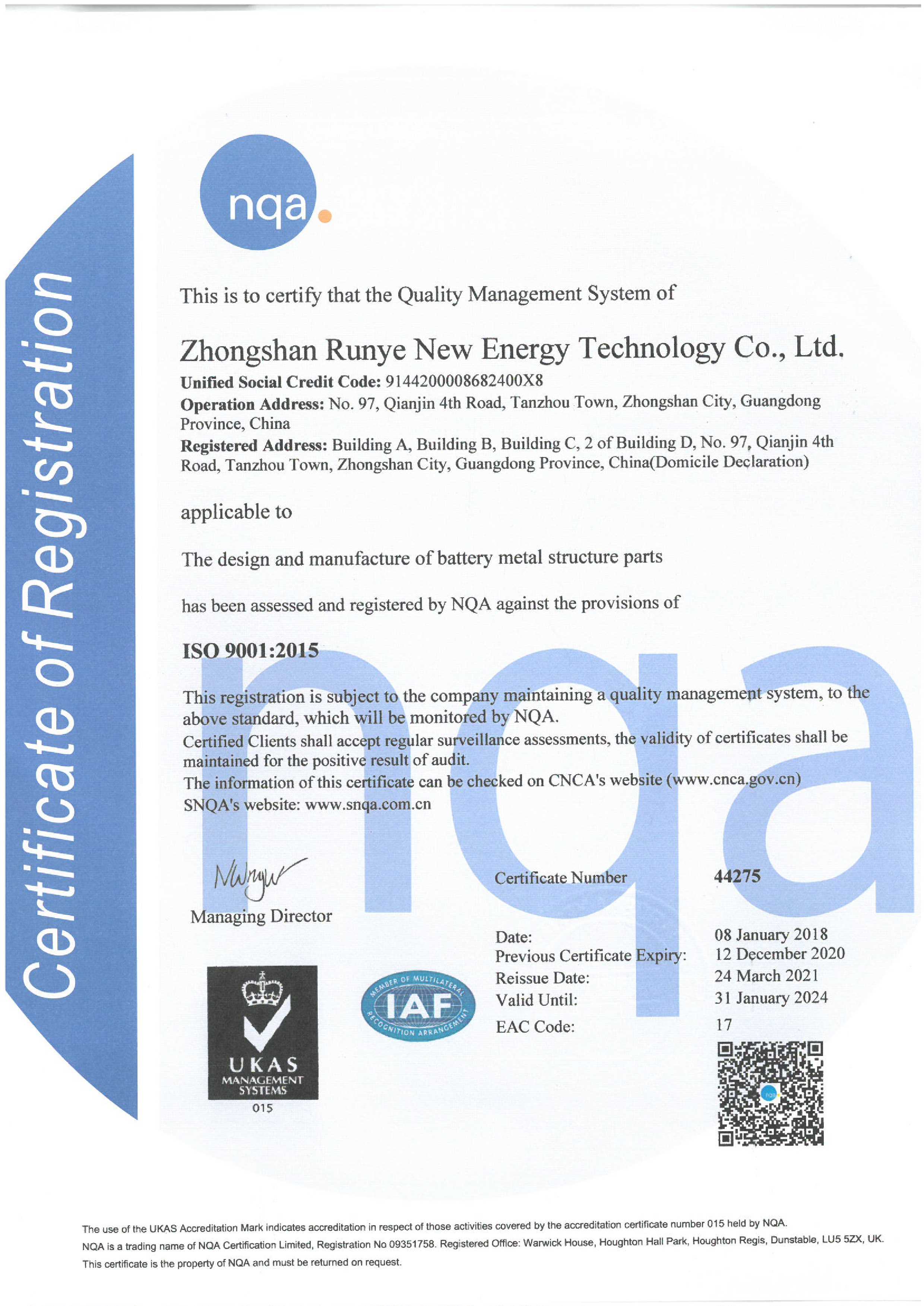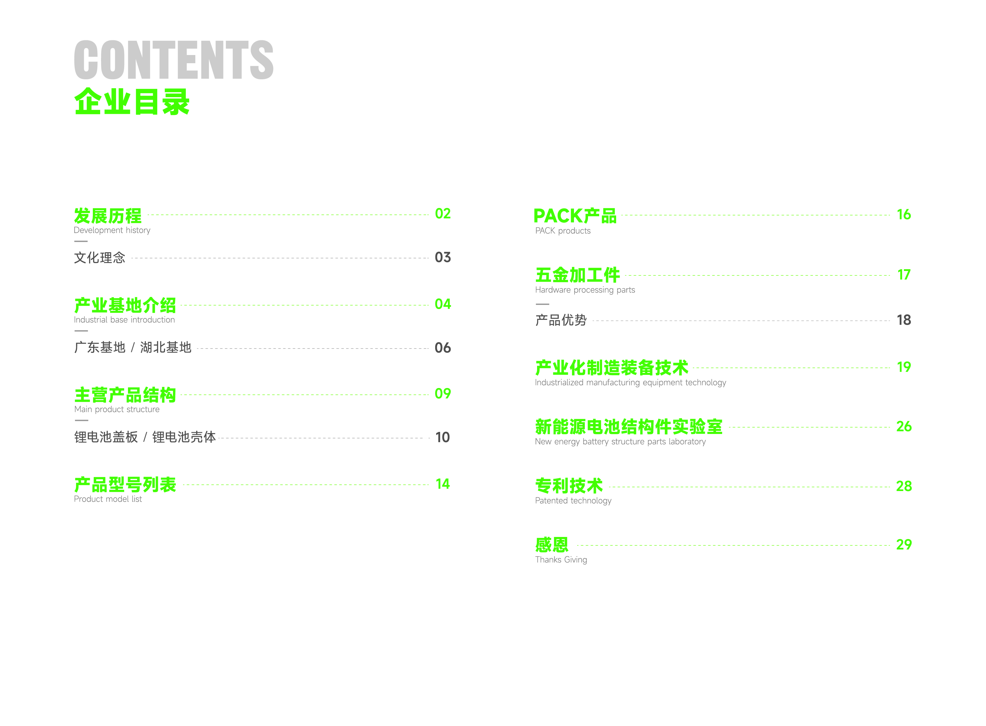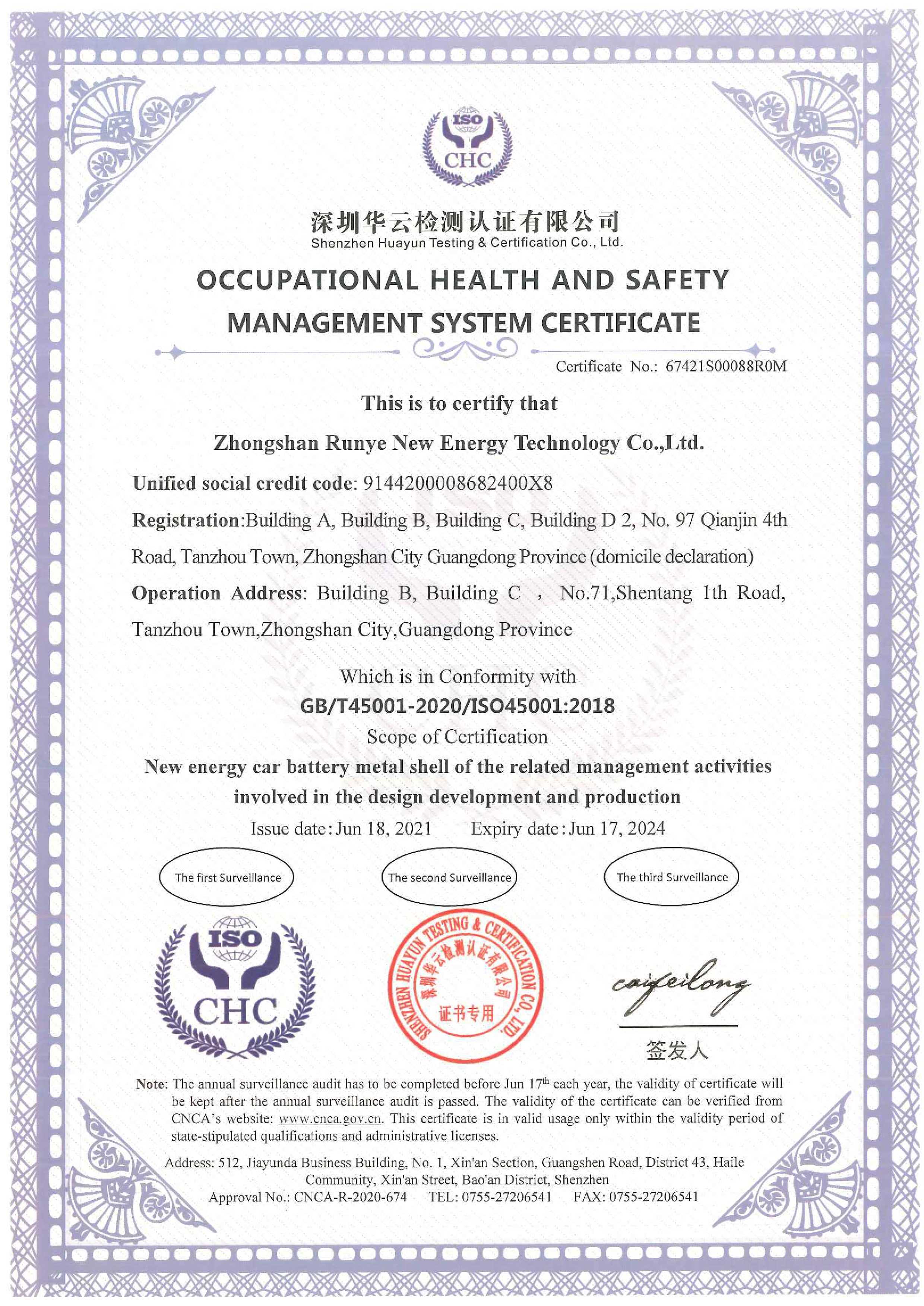 中山市润烨新能源科技有限公司是一家专注于提供新能源动力电池结构件和新能源电池PACK的研发、制造和销售为一体的高新技术企业。主营业务范围包括:新能源动力电池结构件,新能源PACK结构件,两三轮电动车电池组,四轮低速车电池包,储能电池包等产品。总公司位于粤港澳大湾区战略要地—广东省中山市,分 公司位于华中枢纽之地--湖北省宜昌市。作为新能源动力电池结构件的专业配套家,以及多年在行业内赢得 的良好口碑,同时依托华南和华中的地缘优势,我们的新能源工厂已经与国内多家知名电池公司达成战略合 作伙伴关系,作为他们的配套供应商,我司主要依托二大基地来承接和生产这些客户的订单以及做好相关的 配套服务。公司拥有达到国际领先水平的生产设备和多条自动化生产线,可提供整套动力电池结构件、储能电池结 构件的一站式服务,其中十工位“铝壳拉伸生产线”为全自动的生产模式。为实现效率、产能提升及产品品 质的进一步飞跃,科研团队自主研发出多型号高新设备,如“盖板组装线”、“自动化超声波清洗线”、 “精密CNC车床”、“精密CNC加工中心”和“精密防爆阀设备” ,“精密摩擦焊设备”,拥有业内领先的自 主知识产权发明专利和实用新型专利累计近100项,其工艺与技术位列国际领先梯队。